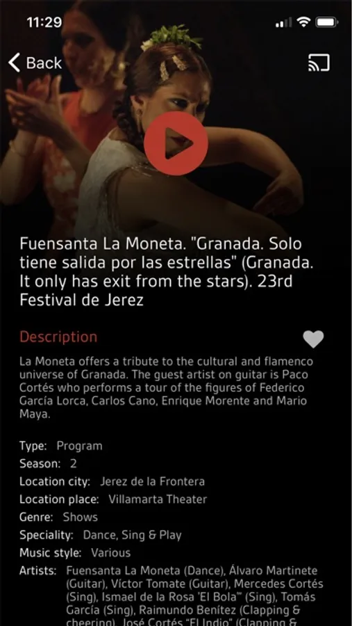 Watch hundreds of unique dance, guitar and singing videos by great artists, dance and guitar playing masterclasses by major maestros and flamenco fashion shows, with pemieres each month, no commercials & up to 4K picture quality.