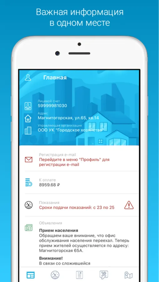 Личный кабинет жителя теперь в твоем телефоне! Передавай показания, скачивай и оплачивай платежные документы, управляй настройками в любое время и в любом месте.