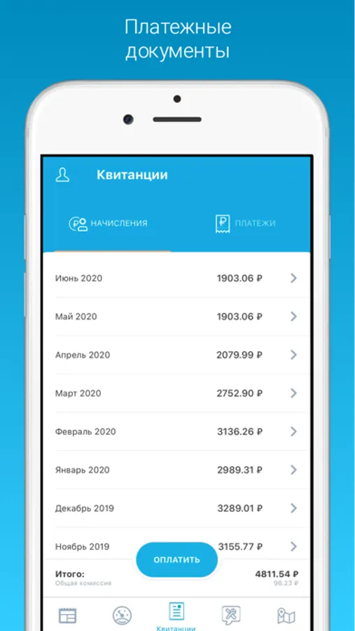 Начисления по услугам: Смотри детализацию и скачивай платежные документы за весь период.