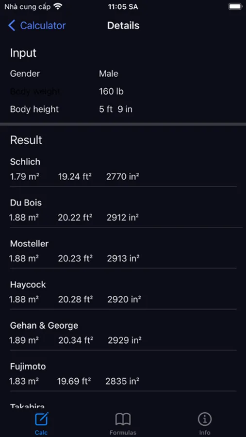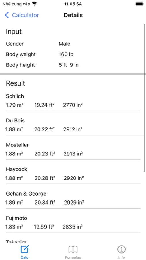 Use this App to calculate the total surface area of a human body, referred to as body surface area (BSA).