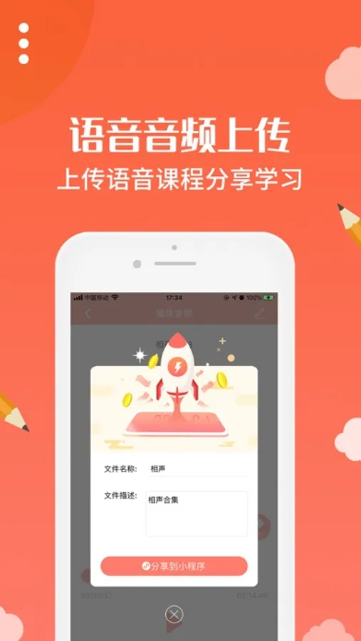 - 课程音频上传,语音课程上传云端进行分享,一起学习!