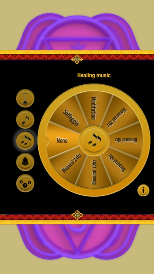 This application uses combination of mindfulness meditation music for Yoga practice with solfeggio frequencies, binaural beats and Tibetan singing bowls.