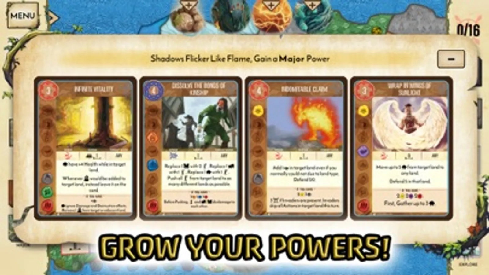 • Create custom games with up to 4 available spirits and play 5 full turns