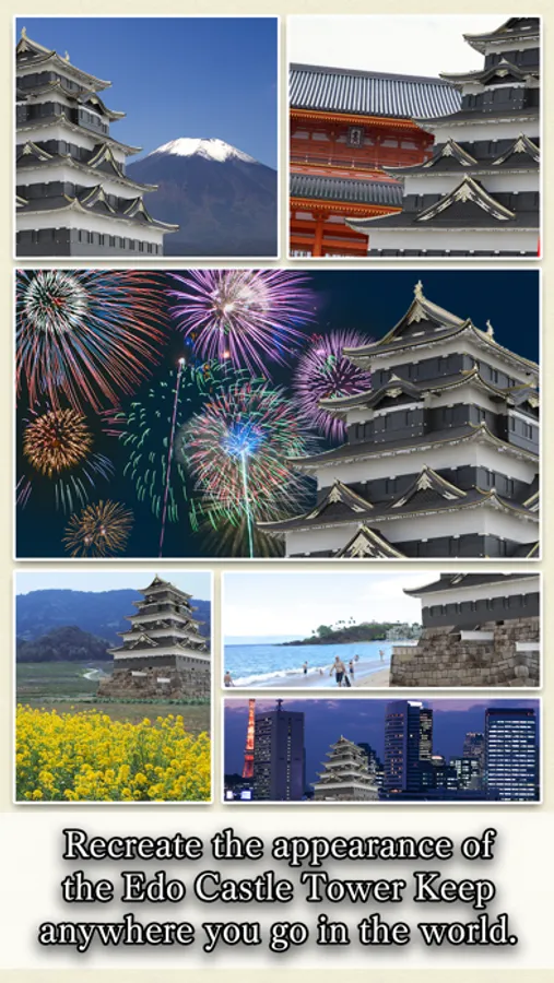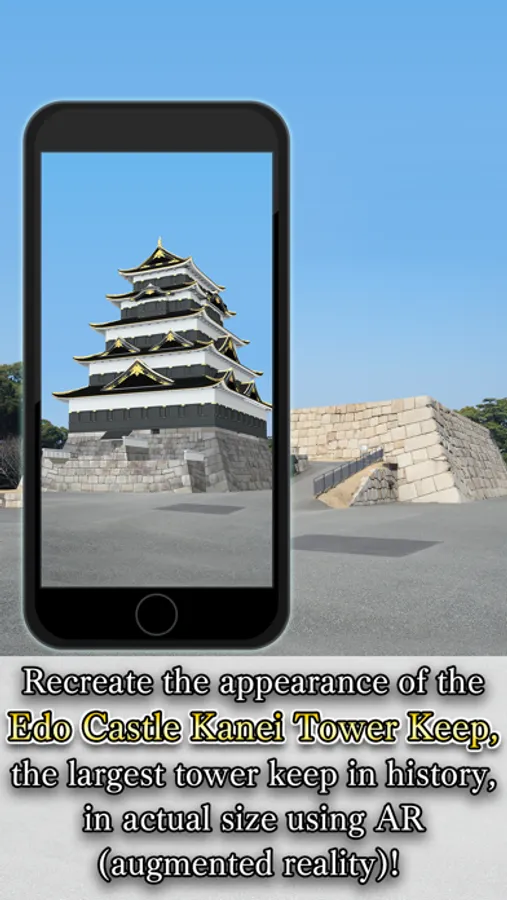 "Edo Castle Tower Keep Resurrected" is an app which uses AR (augmented reality) to recreate and experience the appearance of the Edo Castle Tower Keep at its actual size on the Edo Castle Ruins in Central Tokyo. Also includes explanations of 10 different locations inside Edo Castle including the Soto-sakurada mon (Outer Sakurada Gate) and Niju-bashi (Double-Storey Bridge). The app also allows you to recreate the appearance of the Edo Castle Tower Keep right in front of you anywhere you go in the world.