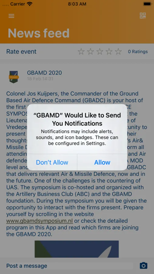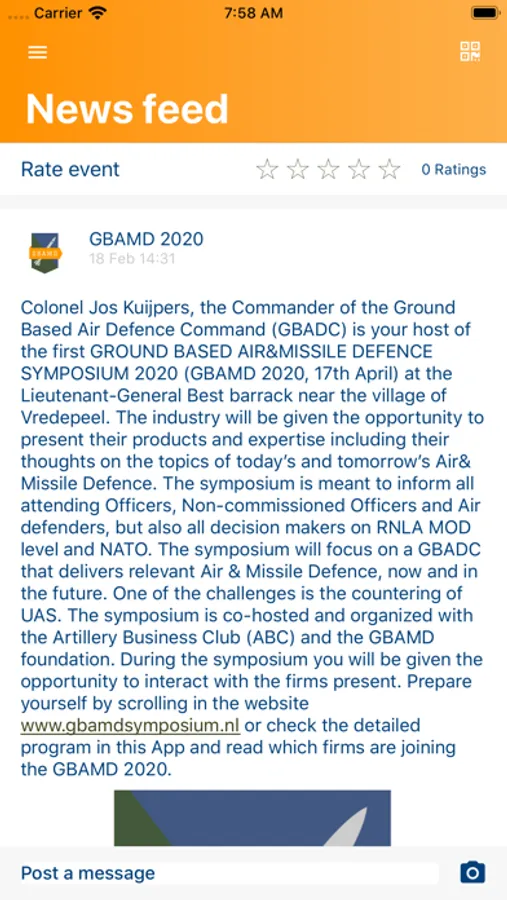 Colonel Jos Kuijpers, the Commander of the Ground Based Air Defence Command (GBADC) will host the first GROUND BASED AIR&MISSILE DEFENCE SYMPOSIUM 2020 (GBAMD 2020, 17th April) at the Lieutenant-General Best barrack near the village of Vredepeel. The industry will be given the opportunity to present their products and expertise including their thoughts on the topics of today's and tomorrow's Air& Missile Defence. The symposium is meant to inform all attending Officers, Non-commissioned Officers and Air defenders, but also all decision makers on RNLA MOD level and NATO. The symposium will focus on a GBADC that delivers relevant Air & Missile Defence, now and in the future. One of the challenges is the countering of UAS. The symposium is co-hosted and organized with the Artillery Business Club (ABC) and the GBAMD foundation. During the symposium you will be given the opportunity to interact with the firms present. Prepare yourself by scrolling in the website www.gbamdsymposium.nl or check the detailed program in this App and read which firms are joining the GBAMD 2020.