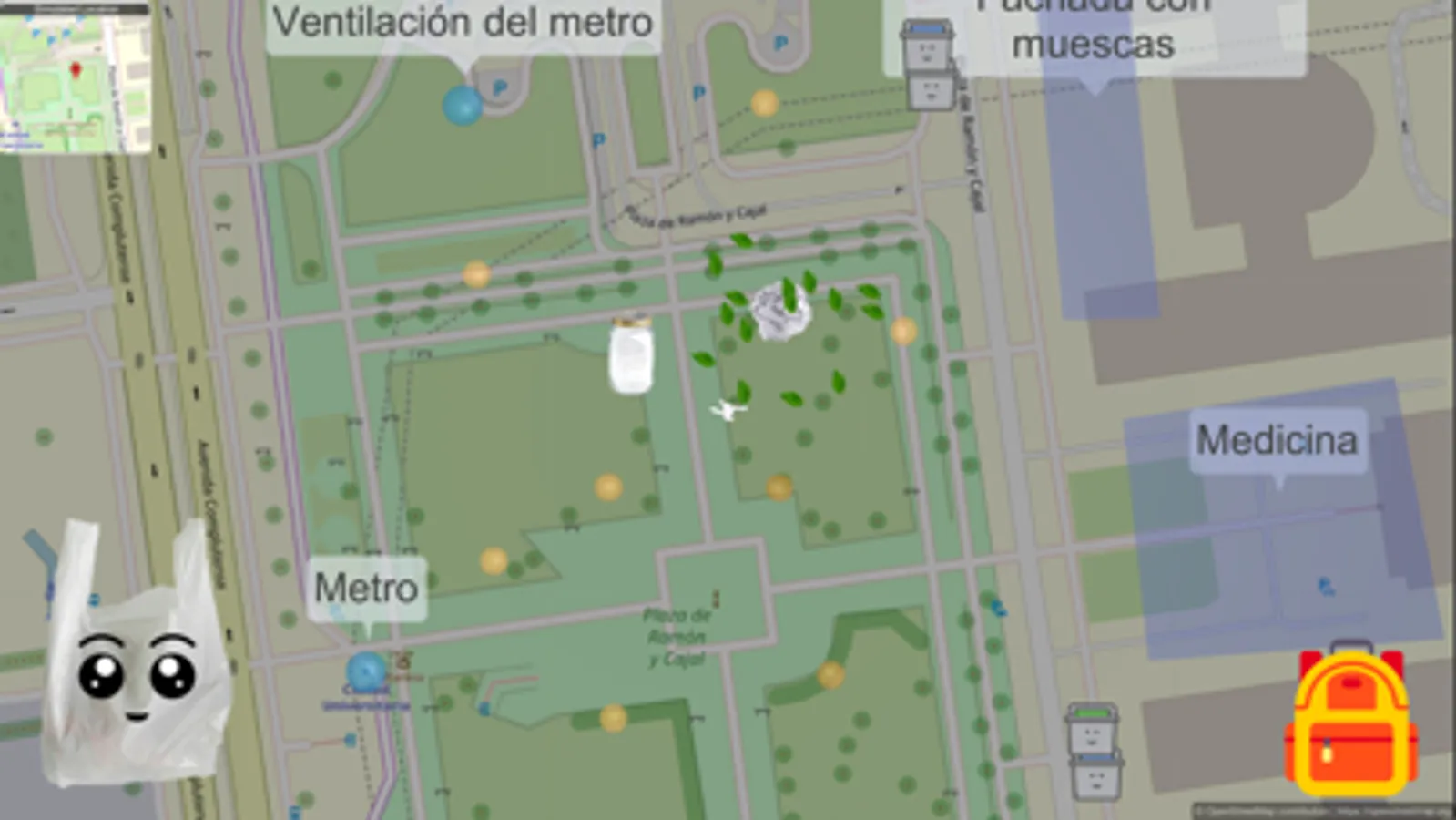 Bandalf y Bolsi te ayudarán en tu aventura. Encuentra los residuos escondidos por la plaza de Ramón y Cajal de la UCM utilizando geoposicionamiento y recíclalos utilizando tu cámara para depositarlos en el contenedor adecuado.