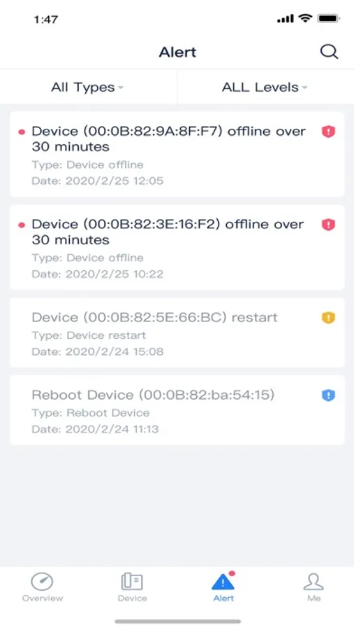 3. Monitor device in real-time: Push the device registration, abnormal status, alert messages to mobile management client.