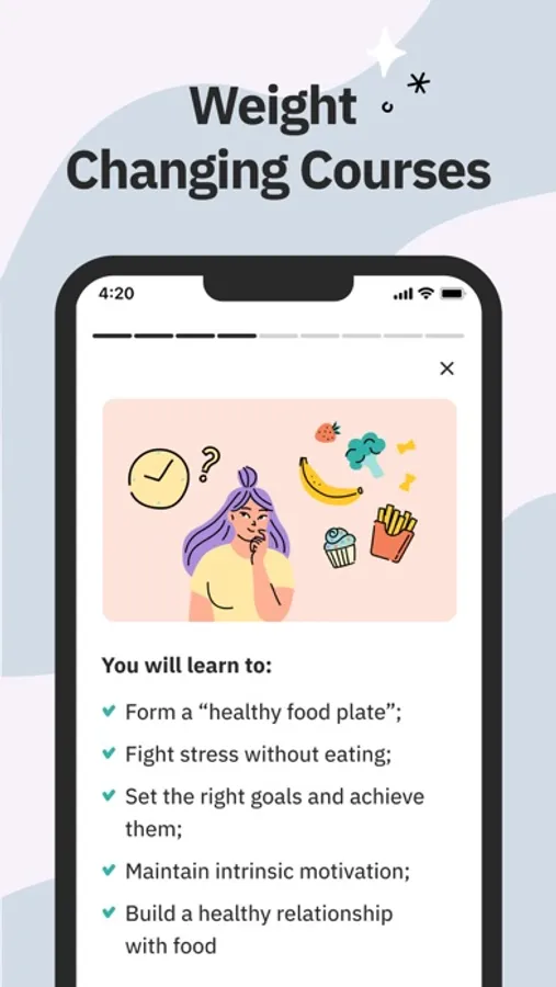 • Database deepening your weight loss knowledge to build a healthy mindset;