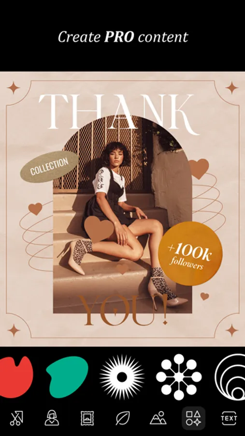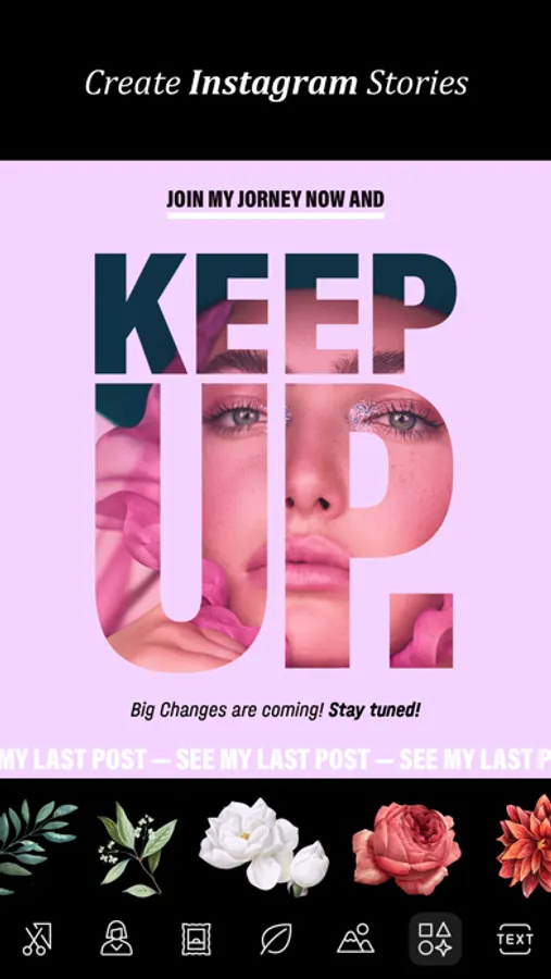 CREATE COLLAGES, posters & flyers, postcards, posts, Instagram stories, and share with friends.