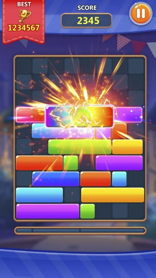 This is a trending puzzle game recently, a really good puzzle game in recent years. The game’s rule is very simple. Magic Blocks with colorful blocks are being pushed up from the bottom. You need to move one block horizontally to the left or right, if there is a space under it, the magic blow will drop down. While it's falling down to the color block beneath, if they form a solid row (a row without empty space), the row will be exploded and you score up. Some special magic blocks are called Rainbow blocks. When they explode, they will make other color blocks close to its edge exploding together. That's all the rule of this game Magic Blocks: Slide Puzzle. Quite simple, right!
