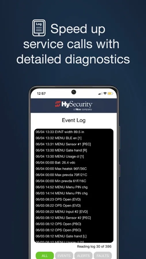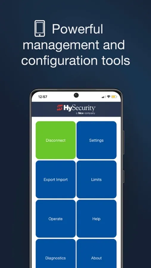 The HySecurity Installer App enables professional gate operator installers to connect wirelessly with HySecurity SmartCNX and SmartTouch 725 controllers to change settings, make adjustments, and run diagnostics. A powerful user interface makes working with SmartCNX and SmartTouch 725 controllers fast and easy. Settings can be stored, uploaded to a SmartCNX or and SmartTouch 725 enabled gate operator, and reused on other operators to speed up common configurations. Diagnostic logs can be saved and shared. It also provides fast access to documentation and installation drawings and diagrams.