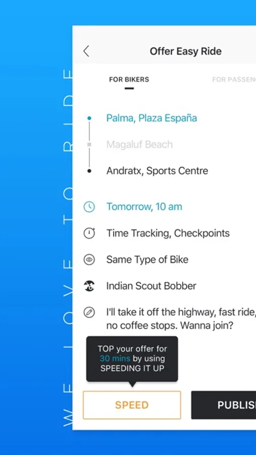 No matter if you are a newbie, an experienced rider, or just want to have a ride with someone. The application is designed for all who love any type of motorbike.
