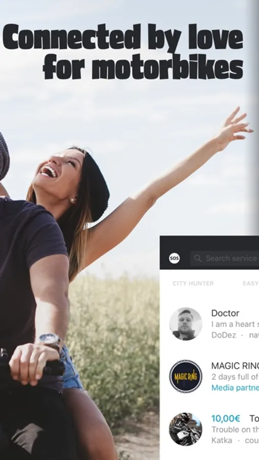 ○ PASSENGER MODE - do you love motorbikes but don't have one yet? No problem! With the app you simply ask for a ride and experience a real bikers life.