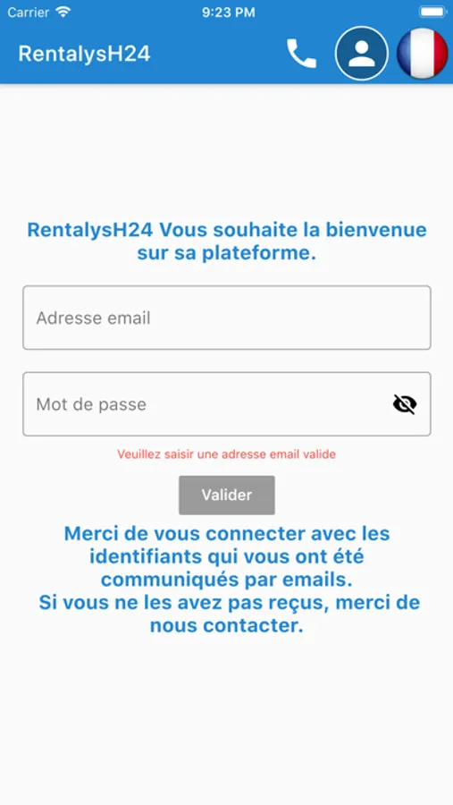 Une vois que votre compte est créé, vous recevrez vos identifiants pour vous connectez via l'application Rentalys H24.