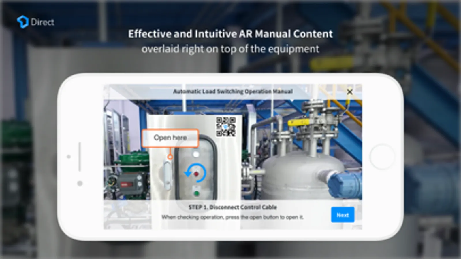 Relevant manuals are overlaid on top of the actual equipment. Operators can quickly and accurately get the job done with the help of visual AR information in the form of texts or images.
