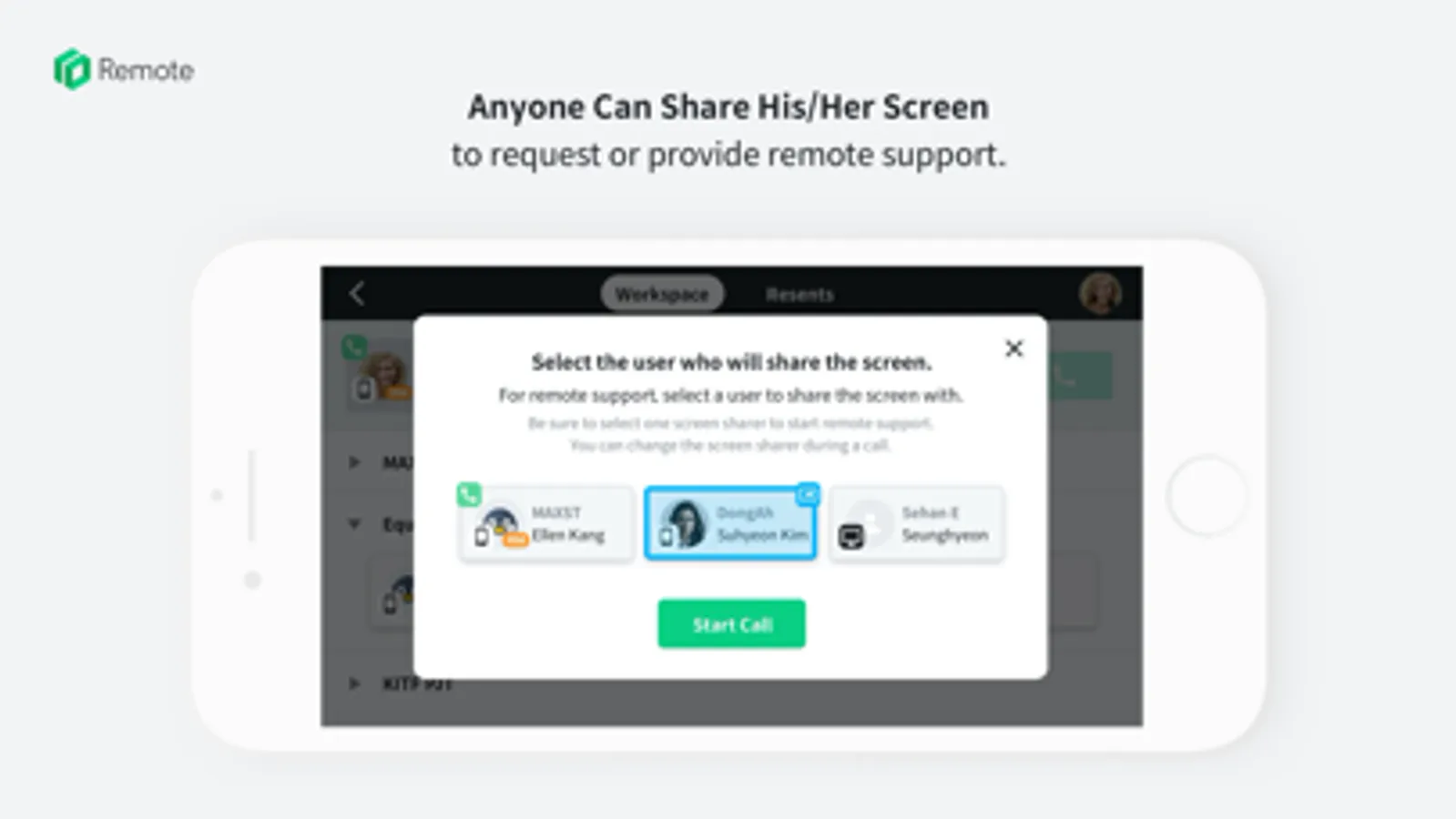 Through the Workspace set by the administrators, remote support can be made in team units, company units, and project units.