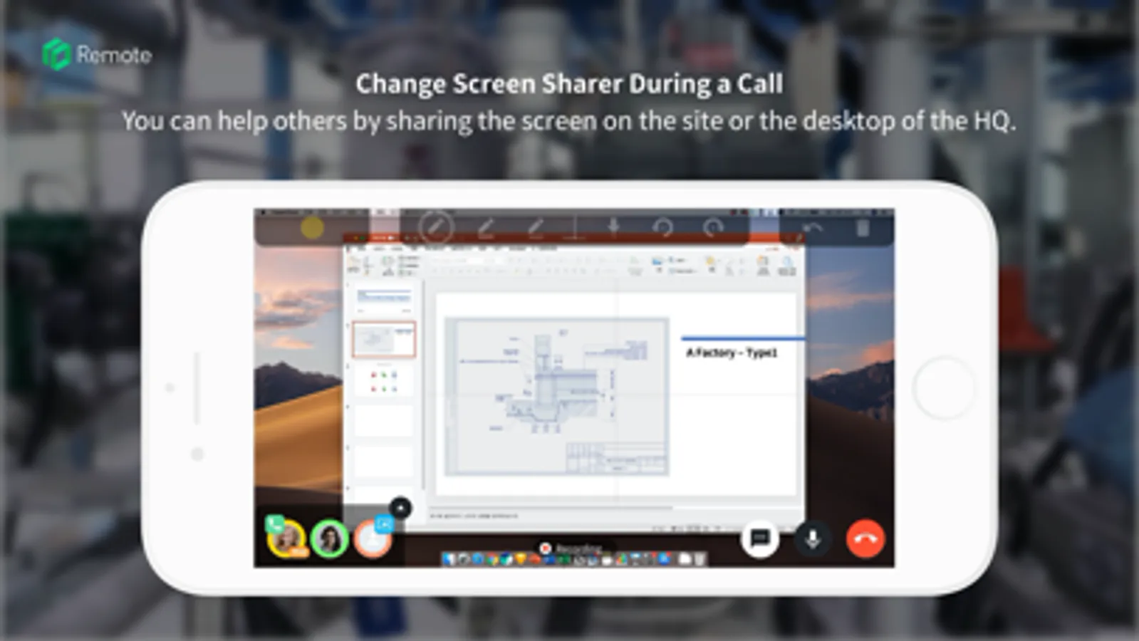 Any participant can share her/his view with others and change the user who shares it even during the call, so that your remote support can be more efficient and multifaceted.
