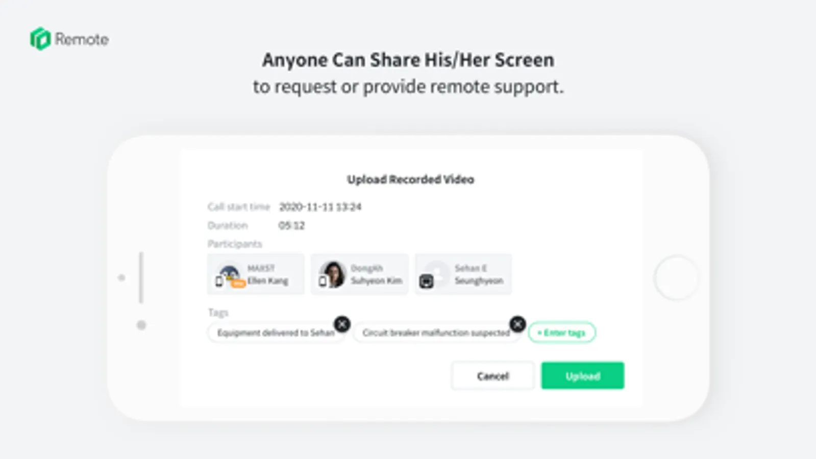 Anyone participating in the remote support can record video of the call. It is easy to track issues that may occur during work, and the recorded videos can be used for training later.