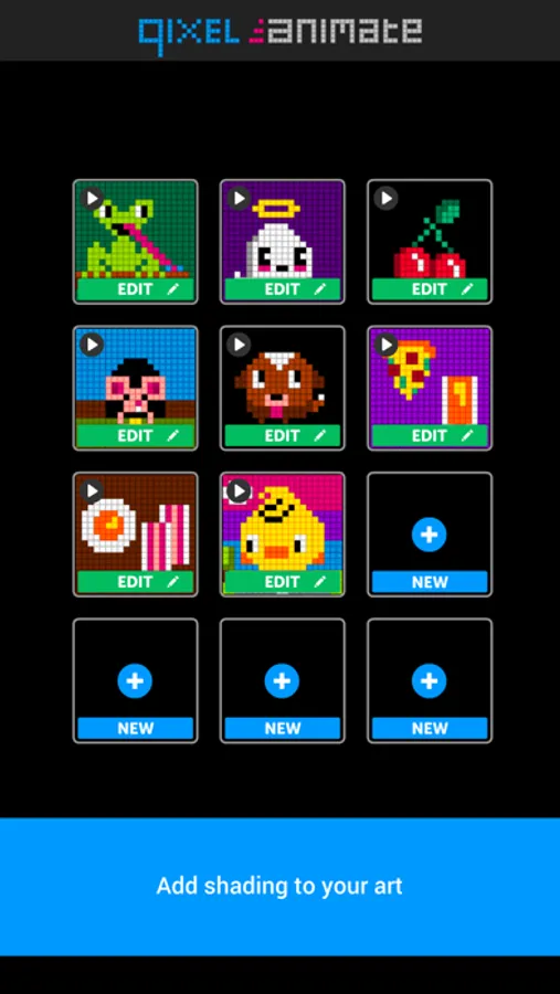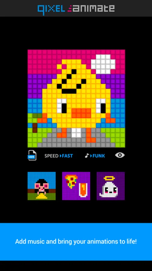 Press the 'Examples' button on the home page to see some ready made pixel animation to give you some ideas. Don't forget to add some music to groove to!