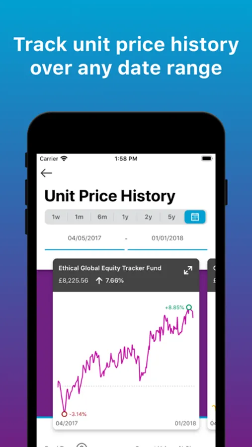 - View Unit Price History - shows fund performance for the selected funds over a specific period, alongside the current balance invested in this fund