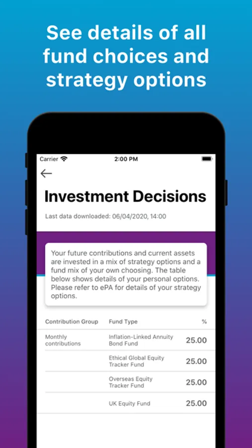 - View Investment Decisions - shows details of any personal fund choices and strategy options