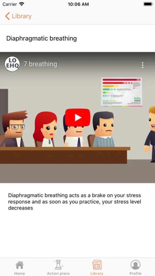 When your stress will be too high, iSMART will suggest watching short videos describing proven techniques to help reduce your manifestations of stress. These techniques have been proven effective by science in reducing levels of cortisol and in decreasing manifestations of stress.