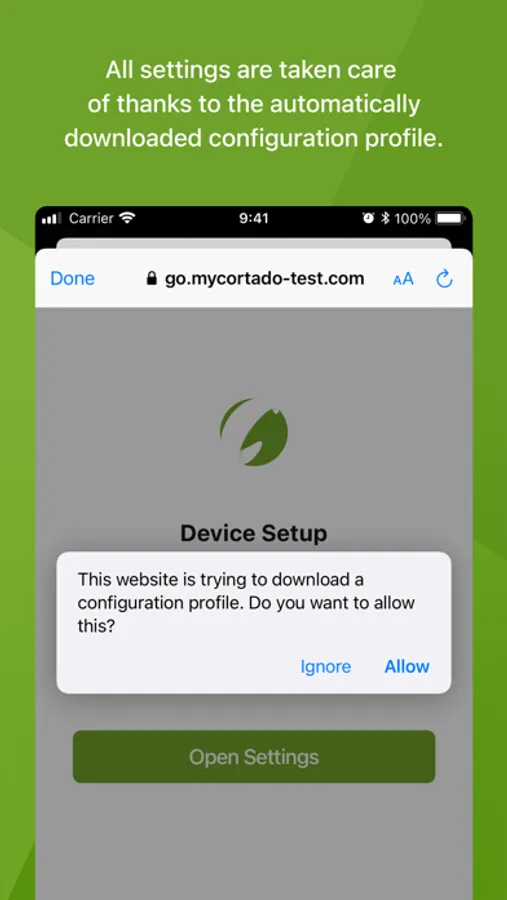 Do you want to use your iPhone or iPad for work? Whether it's a company-owned or private device, the Cortado App ensures the fast, secure, and GDPR-compliant setup of your iPhone or iPad and strict separation of business and private data. For this, the app securely connects your mobile device to your company's Cortado MDM system.