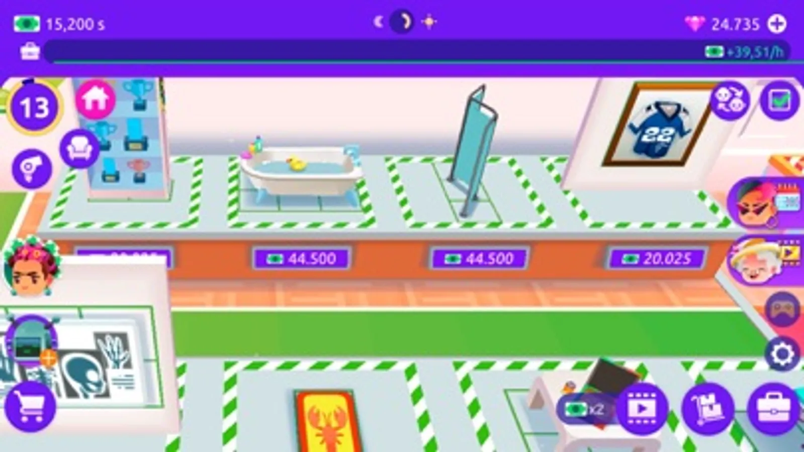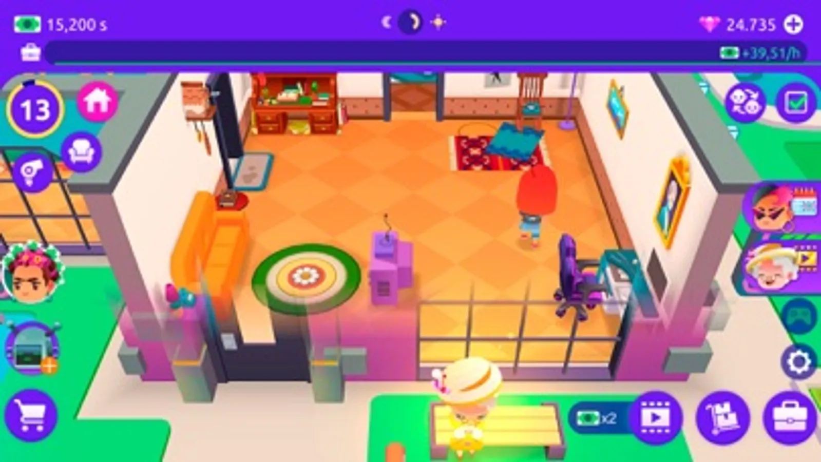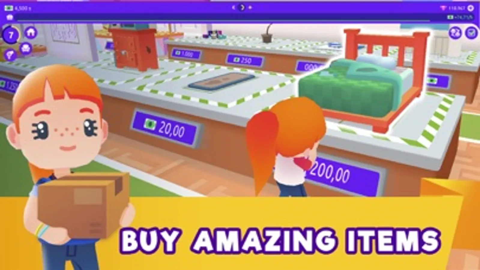 Start in a little loft and become the owner of a big mansion thanks to your management. Go to the decoration store and buy furniture and ornaments. You could start with a bed, a TV, carpets or stylish poufs. You may need a wall clock or a new sofa. Don’t forget about some pictures and paintings, as well as a fully equipped kitchen. Build a cozy apartment!