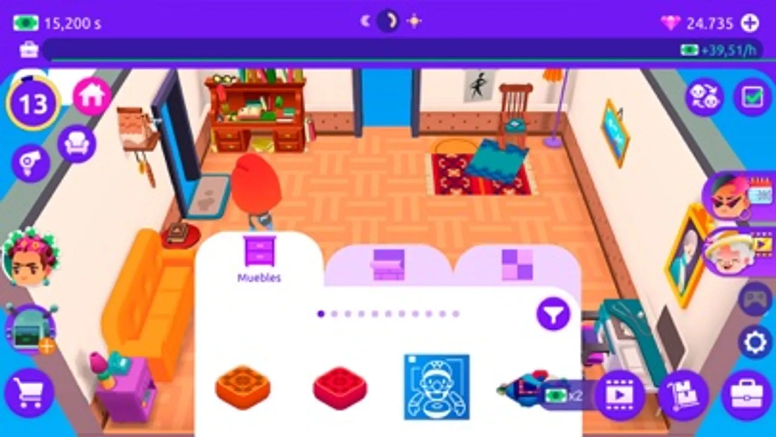 Create your avatars and manage their important decisions to make them succeed in this fantastic world. Choose a professional career, buy a house, go shopping and decorate your room like you always wanted. Place all the objects however you like and change the arrangement as many times as you need to be comfortable. Customize your house and your appearance, learn how to live on your own and train your professional skills to increase your salary. Make your earnings grow and move to a bigger house when you are ready. Get some extra jobs to earn more money and talk to your grandma for some help if the going gets tough…