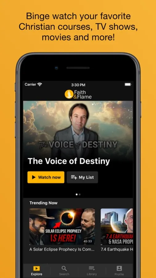 Faith & Flame subscribers can enjoy thousands of tiles in faith-based, spirit-empowered entertainment (movies, TV shows, masterclasses, courses, documentaries, conferences, how-to's, educational, health/fitness, plus Christian, evangelical and inspirational/ devotional titles). Binge watch your favorite christian courses, tv shows, movies and more!