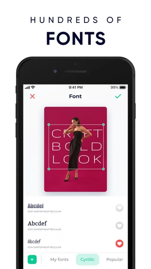 • Get access to special features, like background remover, animated fonts, unique text styles & effects