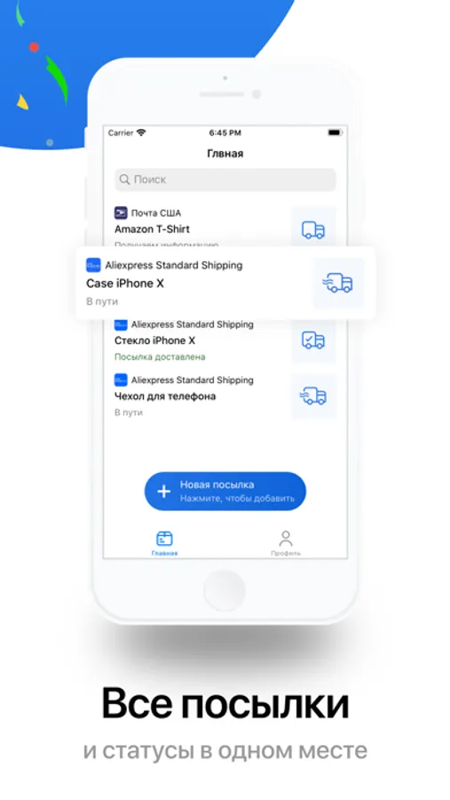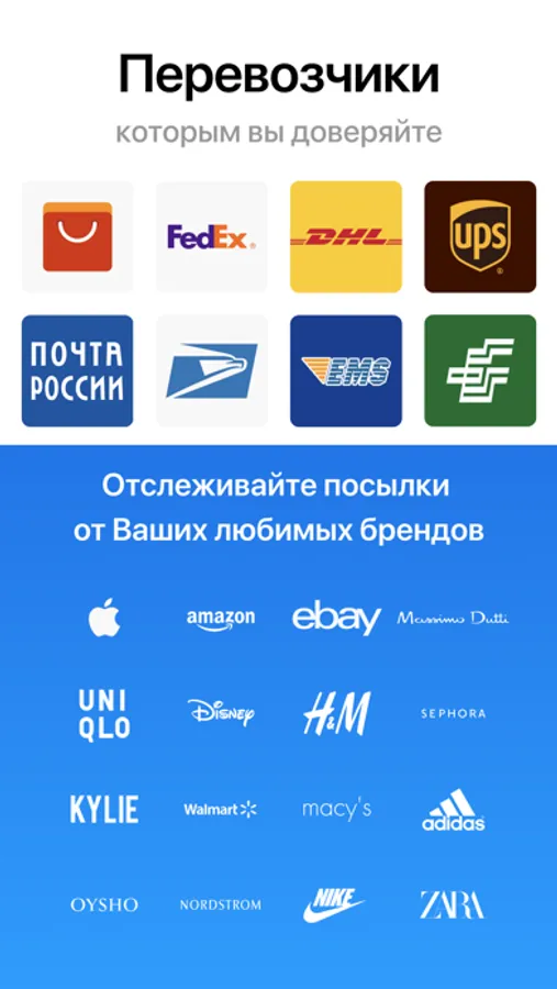 Отслеживайте транспортные и курьерские компании, такие как: UPS, СДЕК, P2P-TrakPak, wnDirect, Yanwen, 4PX, DHL Global Mail, S.F. Express, CDEK, DHL Express, DHL Paket, Winit, NovaPoshta, Sky56, YunExpress, PitneyBowes, 007ex, СПСР, Chukou1, Pony Express, UBI, Parcelforce, FedEx, TNT, Flyt Express, SFC, IML (AMLRU), Yodel, DPD Германия, DPD UK, DPD Россия, Wish Post, GLS, Hermes, KWT56, Landmark, SkyNet, 139 Express, CNE Express, EMPS, ETS, UPS i-parcel, Boxberry, Aerotrans, ТК Энергия, ТК Деловые Линии, Главдоставка, ПЭК, ТК КИТ, РАТЭК, Байкал Сервис, J-NET, DPEX, Aramex, ABX, Ruston, eShopWorld, Yodel Direct, Parcel2Go, EWS, JCEX, Metapack, ЖэлДорЭкспедиция.