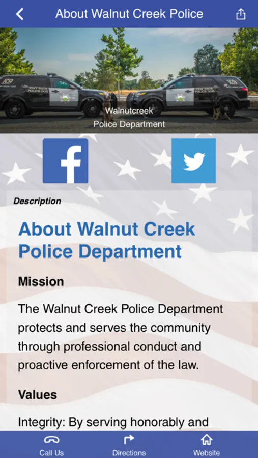 This app is for the employees of the Walnut Creek Police Department and the community it serves. It contains information about our department as well as safety and crime prevention tips.