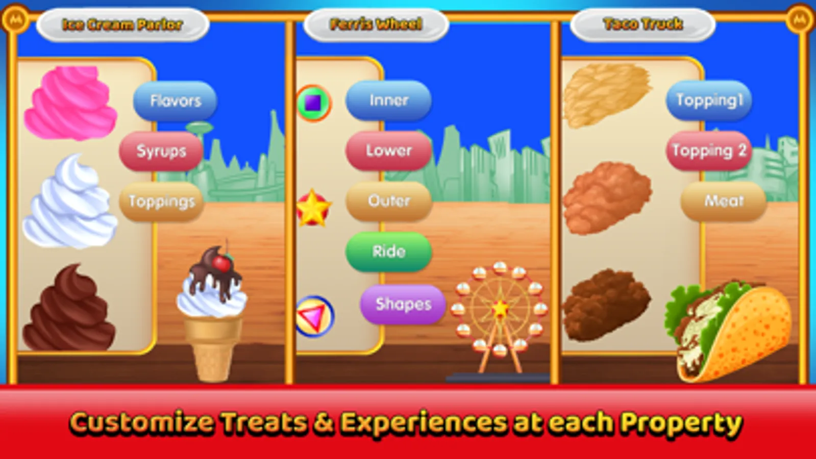 - 16 GORGEOUS ANIMATED LOCATIONS: every kid friendly classic brought to life - Toy Shop, Bakery, Aquarium, Museum, Pet Shop, The Zoo, Boardwalk, Ice Cream Parlor, Roller Coaster, and more!