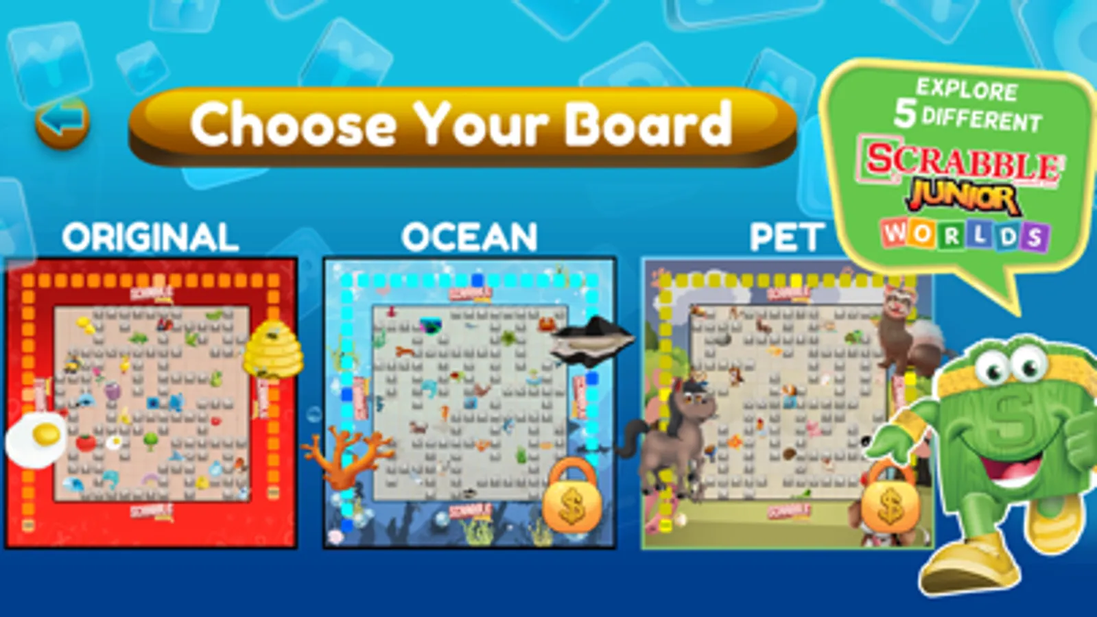 This brand-new app offers five boards and two levels of play – Matching and Spelling – so it will be perfect for both your beginning and early readers. There’s the Original SCRABBLE Junior board and four additional boards with themes and a colorful world of letters and words that will interest and appeal to your child. And there’s an audio feature for your child to hear the names of the letters they choose, the words they complete and a fun fact for every word!