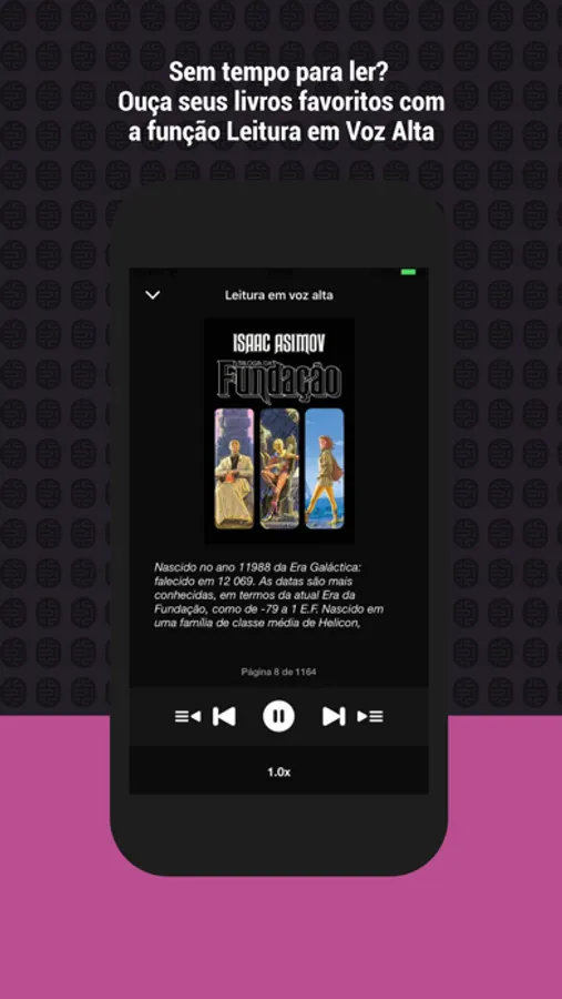 - OUÇA NO SEU RITMO! Com a função de leitura em voz alta você aproveita os livros no seu jeito. Aumente a velocidade de reprodução em até 2 vezes. Esta função fica ativa em segundo plano, ou seja, você pode continuar usando o celular enquanto ouve o livro.