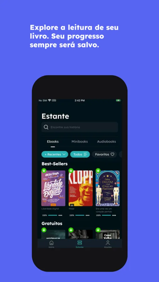E com funcionalidades incríveis, você poderá aproveitar ainda mais seus momentos de leitura. Nosso conta com mais de 500 livros gratuitos!