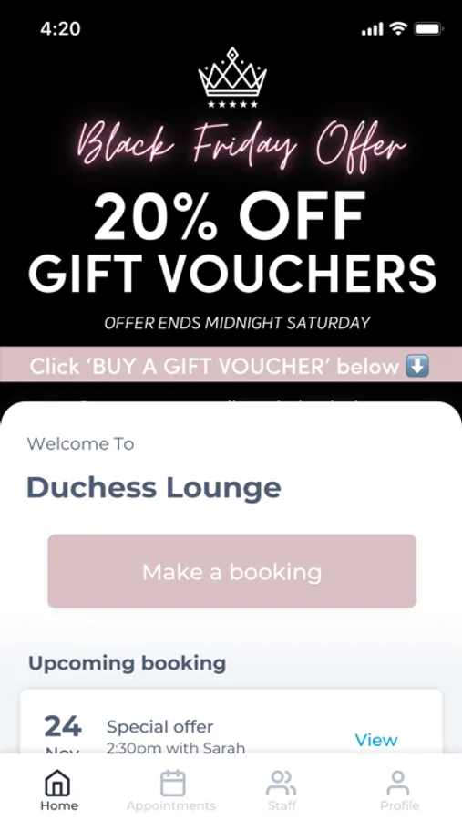 The Duchess Lounge app makes booking your appointments and managing your loyalty points even easier. You're just a few taps away from feeling good and looking great!