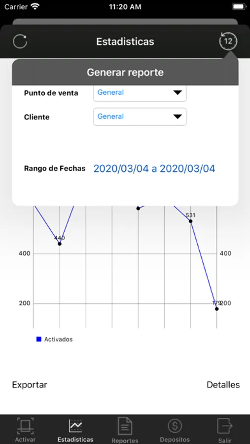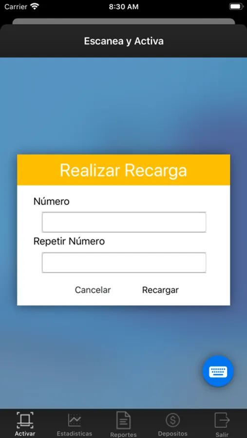 Aplicación que permite hacer recargas a teléfonos celulares, así como también ver el total de todas las recargas por medio de filtros de fechas.