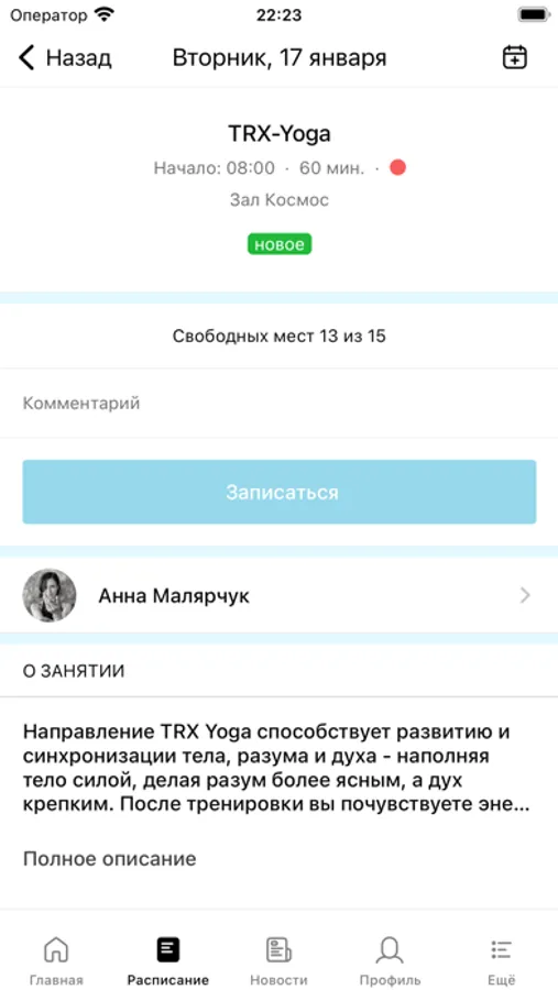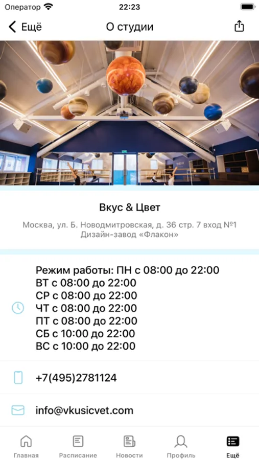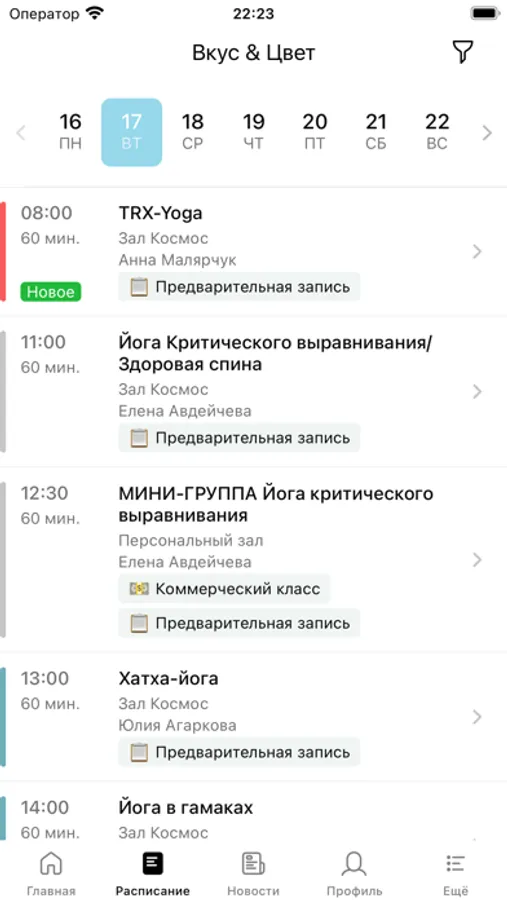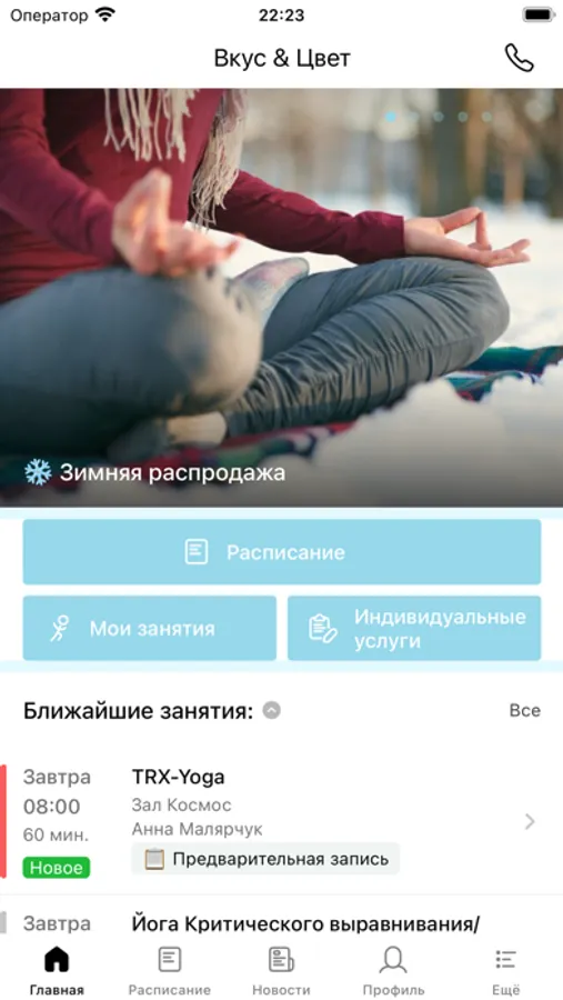 Запись на занятия, афиша мероприятий, последние новости и акции для клиентов студии йоги Вкус & Цвет