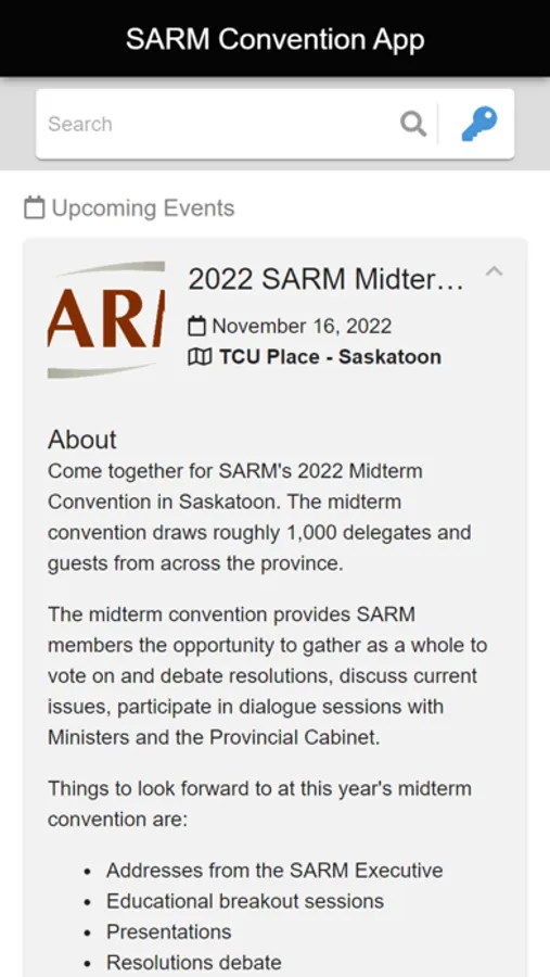 Access everything you need for SARM Conventions through this innovative event app. All convention guidebook information can be found in the app. View the agenda and plan your day at the convention using the scheduling tool, view the resolutions to be debated and voted on, learn about our convention sponsors, and much more!