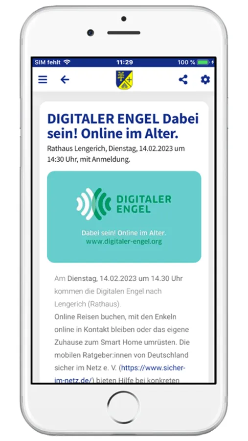 Weiterhin bietet die App aktuelle Meldungen aus dem Ort, Übersichten der Vereine und Institutionen und vieles mehr.