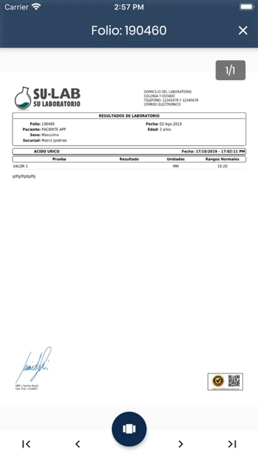 Con esta aplicación usted podrá tener sus resultados de uno o más laboratorios en la palma de su mano así como utilizar otros servicios como fila express, recibir notificaciones de estudios listos, tarjeta de puntos y mucha más información.