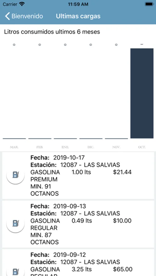 • Consulta el detalle y comportamiento de tu consumo de combustible.
