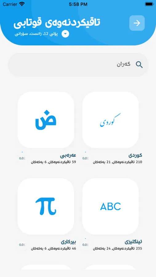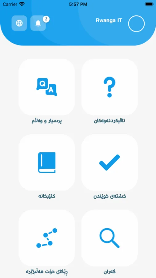 Qutabkhana application is an educational platform of Rwanga Foundation. Qutabkhana provides questions and answers from KRI’s curriculum for 9th & 12th grade students. The platform also supports the youth on how to choose their path before applying to college by providing new content to guide them choose the right specialty. Moreover, the application includes other features that support the student's non-formal education, and are available in Kurdish, Arabic, and English.