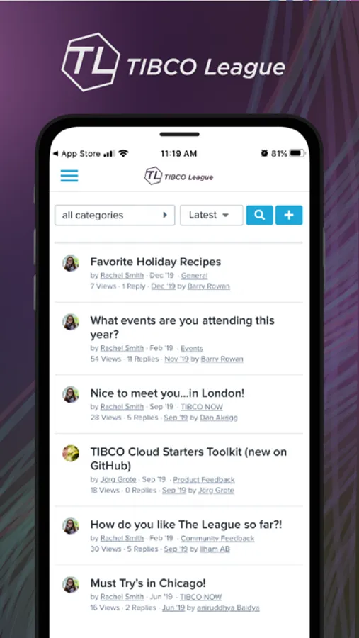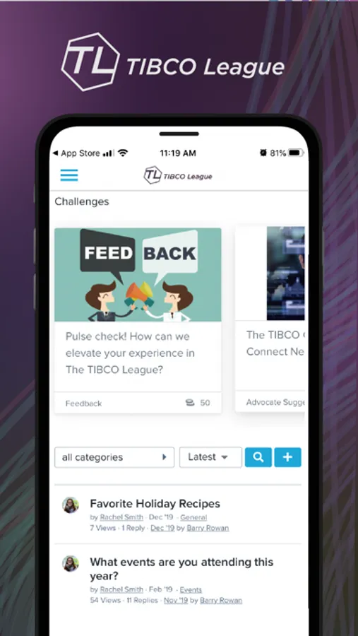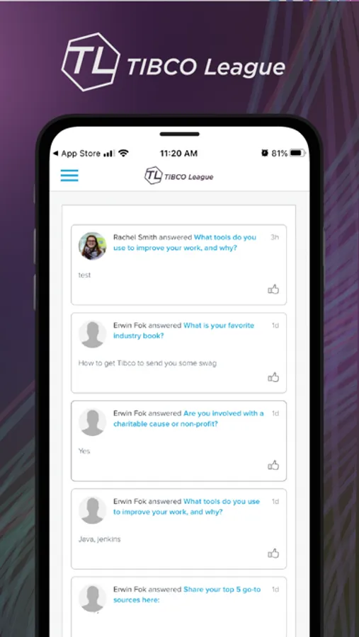 Once you’ve joined the platform, the TIBCO League lets you engage with TIBCO from anywhere. Complete fun & interactive challenges, earn points, and connect with peers in your space. This is your chance to join a thriving community of TIBCO customers and developers with behind-the-scenes access to TIBCO. This community can give you: - The opportunity to be heard, see previews, and access new features before anyone else—plus provide your feedback directly to TIBCO about everything from products you use to programs you’re involved in. - Exclusive perks and rewards including access to product roadmaps or top-level execs. Plus, earn points you can redeem