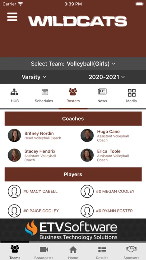 - Rosters: Current rosters by sport including jersey number, name, photo, position and grade.