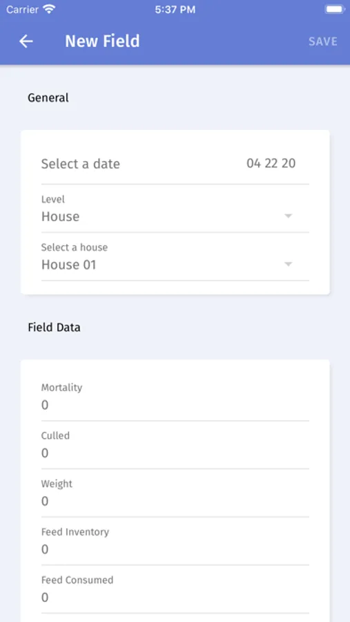 Mobile application for the agroindustry allowing users to collect field data and reporting, enabling users to enter information about their flock anywhere and anytime.