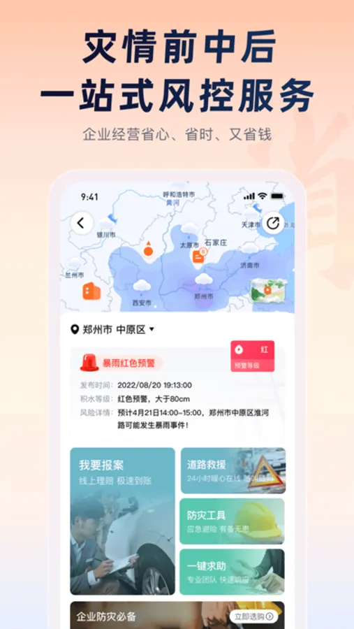 【灾害预警】提供17种自然灾害气象预警和防灾指南,帮助企业做好风险控制工作,避灾减损;