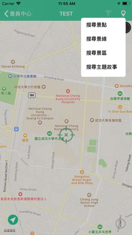 6. Search for nearby attractions / scene lines / scenic areas / theme stories with the center of the map cross